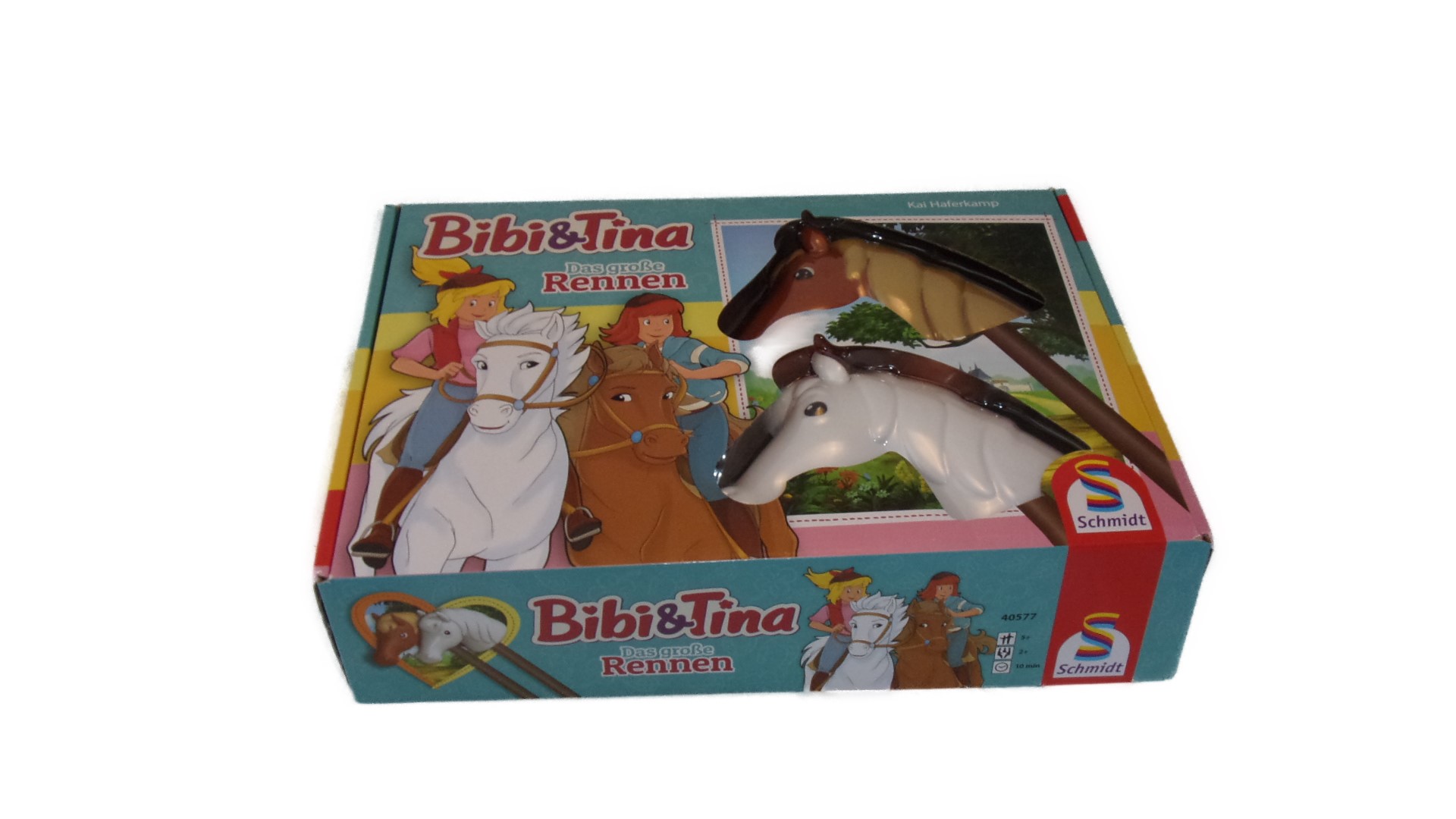 Los geht es: Schwingt euch auf Amadeus oder Sabrina, überwindet die Hindernisse und sammelt mit eurem Pferd die richtigen Farbkarten ein. Klar geht es bei diesem Rennen darum, schnell und geschickt zu sein. Aber auch ein gutes Gedächtnis hilft euch zu gewinnen. Denn nur wer sich merkt, welche Karten er sammeln muss, wird das Rennen am Ende machen und als Sieger durchs Ziel reiten.