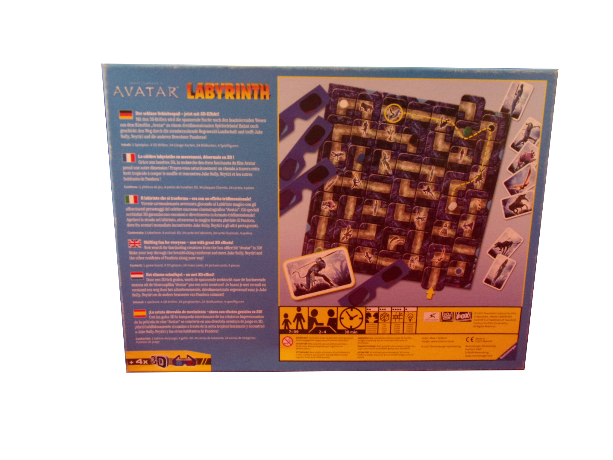 1 Spielplan, 4 3D-Brillen, 34 Gänge-Karten, 24 Bildkarten, 4 Spielfiguren, 1 Spielanleitung (DE,EN,FR,IT,NED)