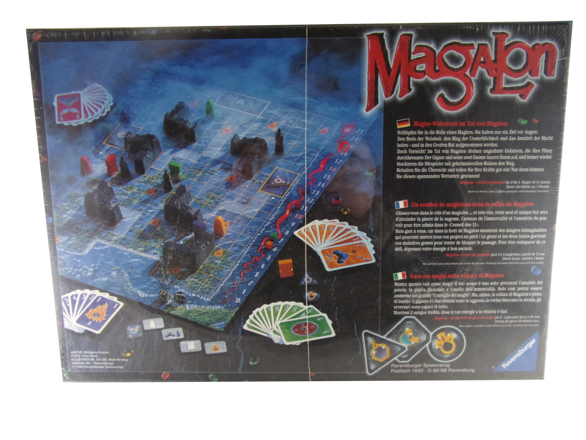 Schlüpfen Sie in die Rolle eines Magiers. sie haben nur ein Ziel vor Augen: Den Stein der Weisheit, den Ring der Unsterblichkeit und das Amulett der Macht holen - und in den großen Rat aufgenommen werden. Doch Vorsicht! Im Tal von Magalon drohen ungeahnte Gefahren, die Ihre Pläne durchkreuzen: Der Gigant und seine zwei Gnome lauern Ihnen auf, und immer wieder blockieren die Mitspieler mit geheimnisvollen Ruinen den weg. Behalten Sie die Übersicht und teilen Sie Ihre Kräfte gut ein! Nur dann können Sie diesen spannenden Wettstreit gewinnen.
