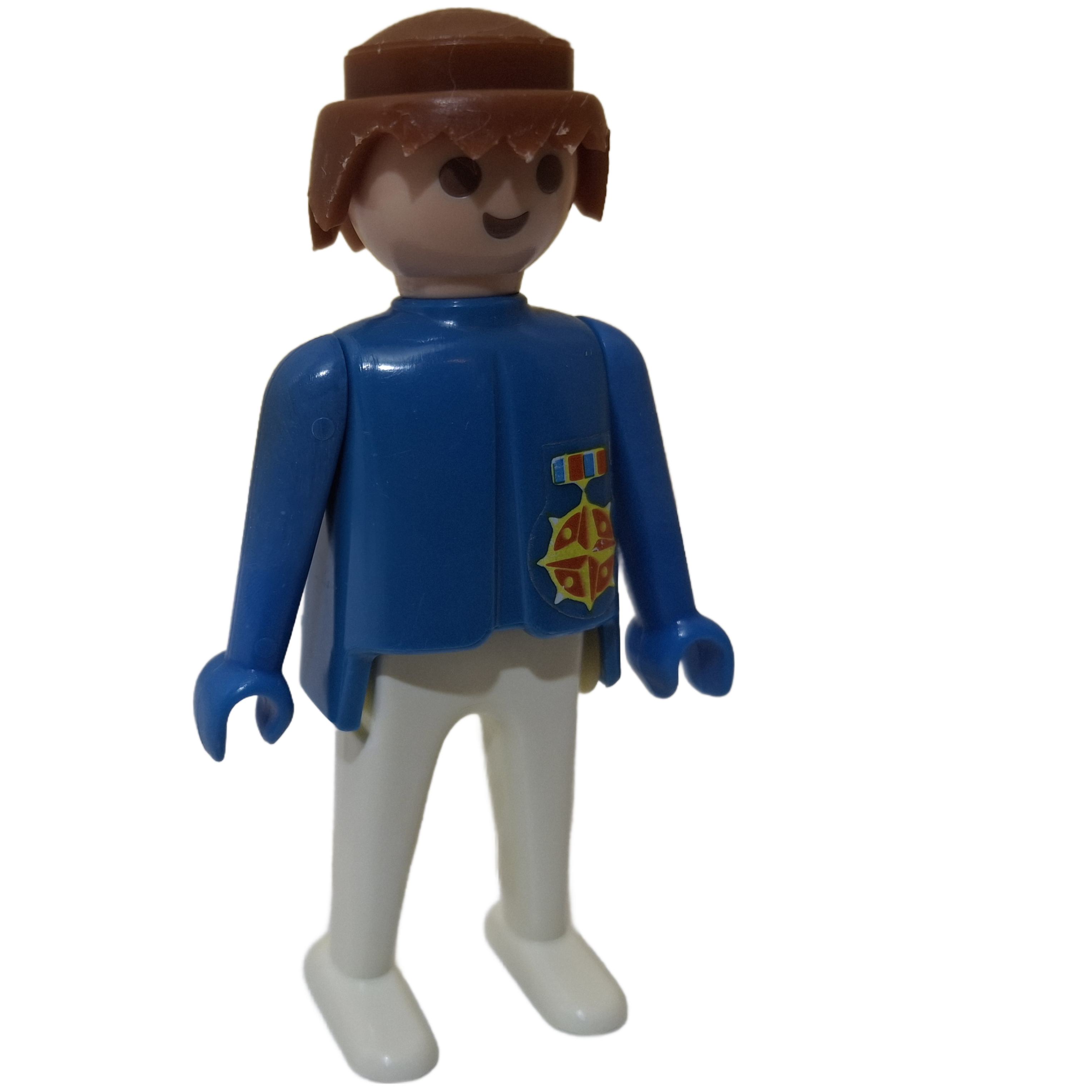 Playmobil ® Mann blau / weiß braune Haare feste Hände Aufkleber gebraucht
